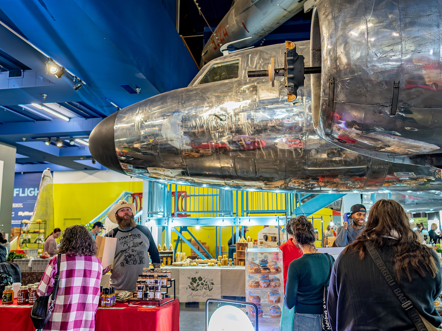 As you might expect, the Winter edition of the market is a more compact affair compared to the sprawling Summer extravaganza. That said, there’s no shortage of excellent vendors to fill several shopping bags. There are plenty of new faces to meet and shop as well as all the familiar favorites; all the while, flanked by air support from the suspended Mig 21 and C131, remnants from the former flight exhibition at the museum.